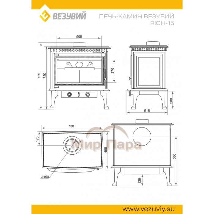 Описание Печь-камин Везувий RICH-15 «Антрацит»