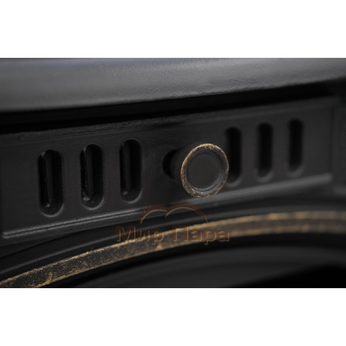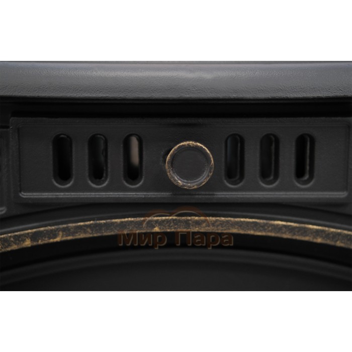 В верхней части топочной камеры установлен чугунный отбойник пламени, он же рассекатель, который предназначен для увеличения КПД печи и снижения высоты пламени внутри дымохода.
