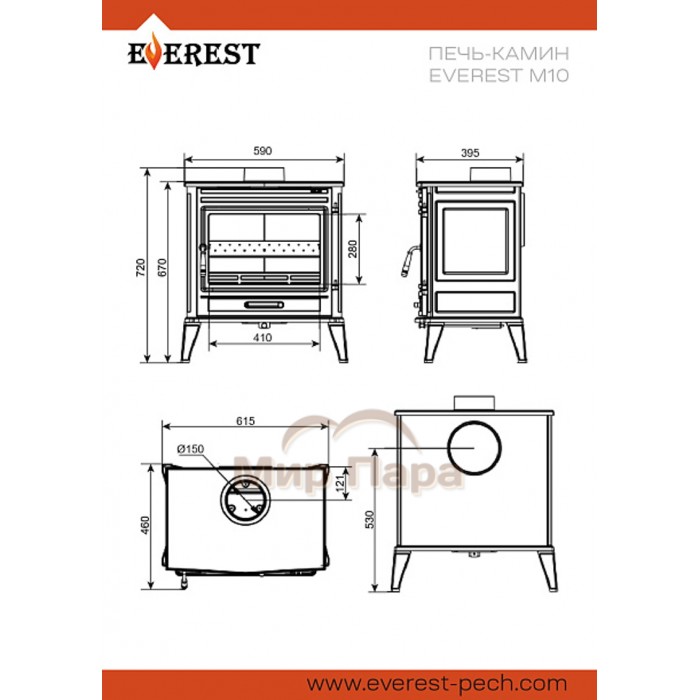Печь-камин Everest М10 — это чугунная дровяная печь мощностью 10 кВт, рассчитанная на обогрев жилых помещений объемом до 200 м3 и создание эффекта «живого» камина в доме или на даче.