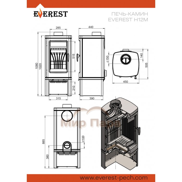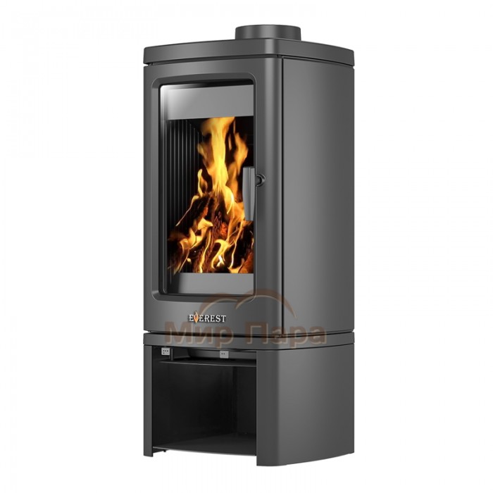 - Нижняя часть модели Н12М выполнена в виде подставки с нишей для хранения дров или аксессуаров, что делает печь функциональным и аккуратным элементом интерьера. EVEREST Н12М подойдет для загородных домов и коттеджей, где важны мощный обогрев, надежность чугунной конструкции и эффектный вид живого огня.