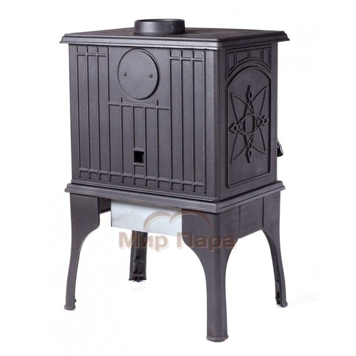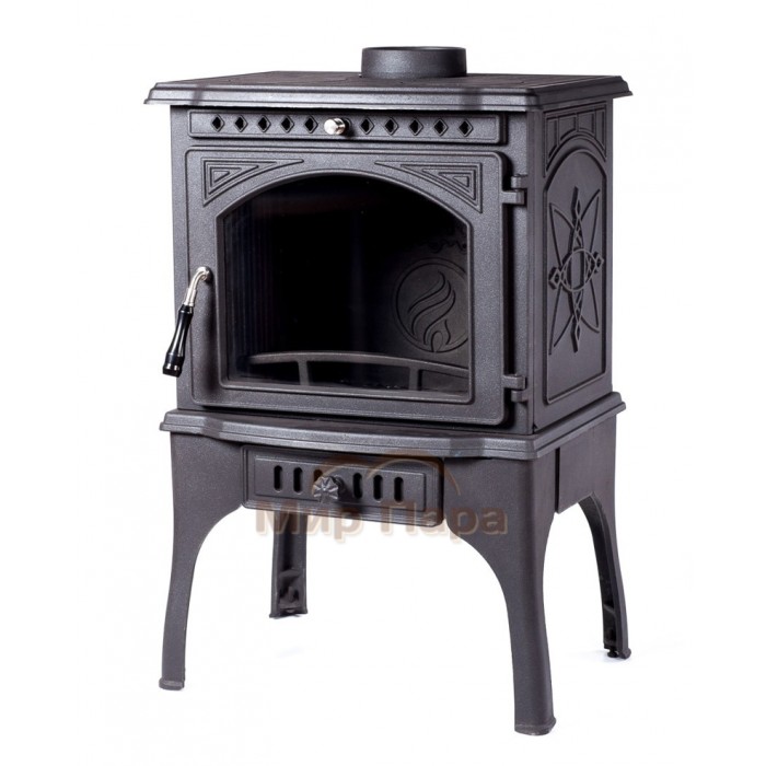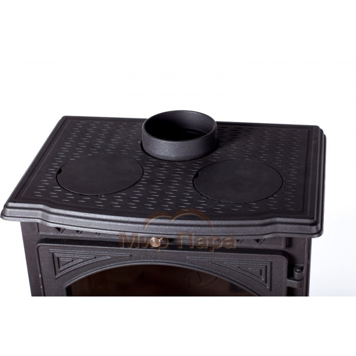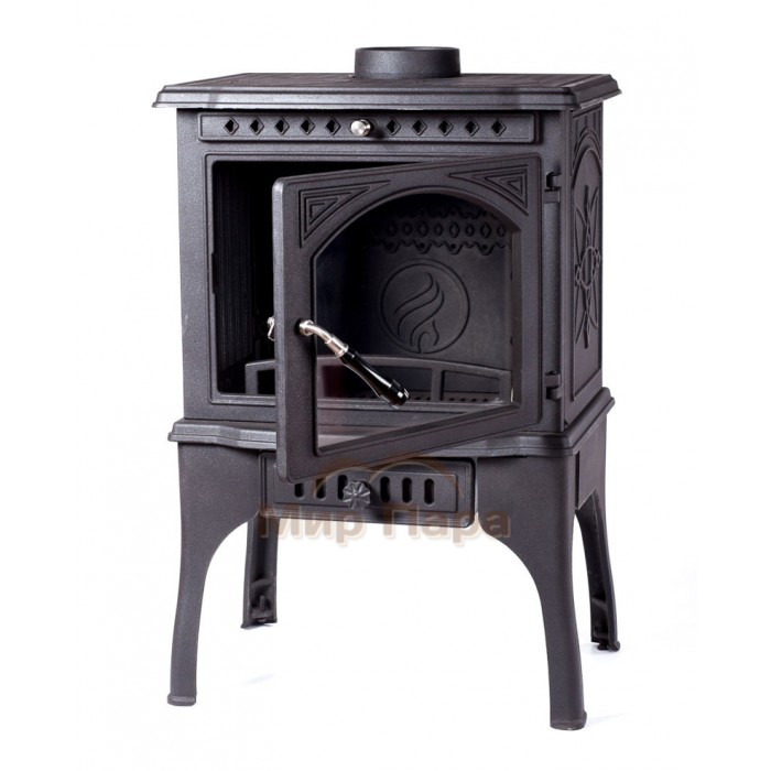 Печь предназначена для обогрева жилых помещений. Теплоотдача осуществляется от корпуса печи и через огнеупорное стекло. Корпус печи изготовлен из чугуна, на топочной дверце установлено огнеупорное стекло. Идеальный вариант для отопления загородного дома, с возможностью приготовления либо разогрева пищи.