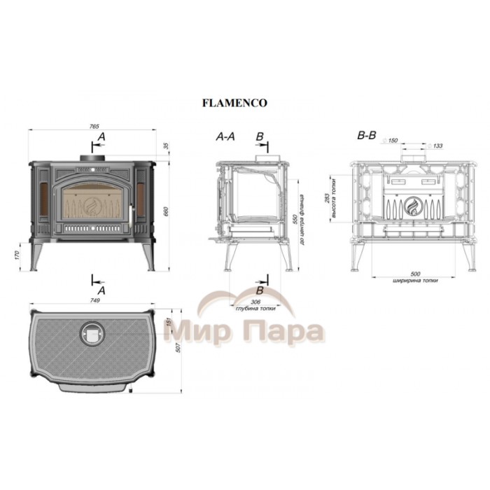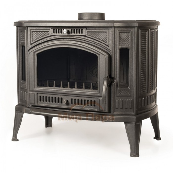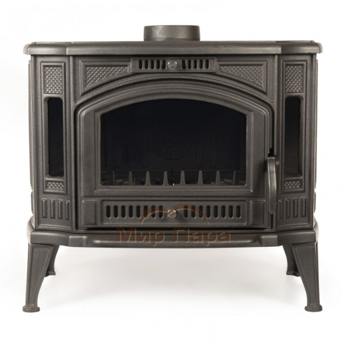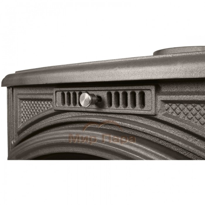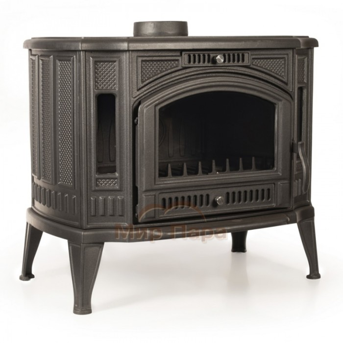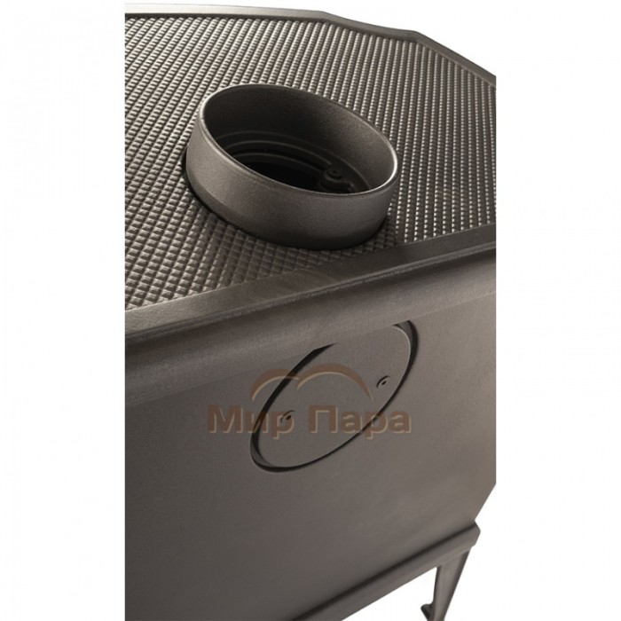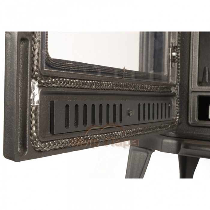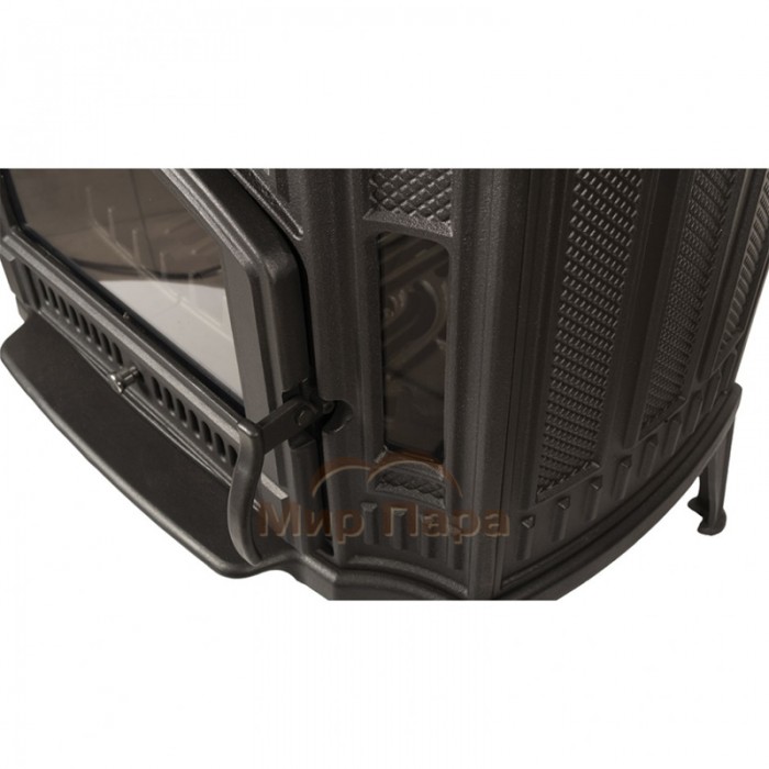 Дверца печи оснащена огнеупорным стеклом, выдерживающим температуру до 700°C, позволяющее смотреть на пламя и максимально излучать тепло.