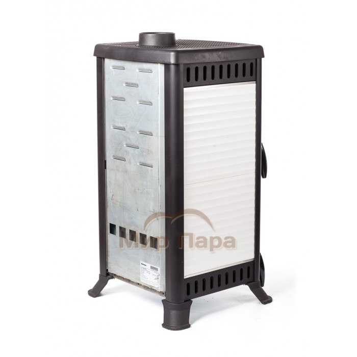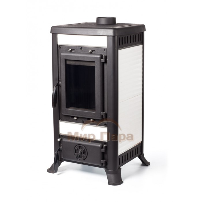 Печь предназначена для обогрева закрытого помещения. Тепло передается через огнеупорное стекло и кожух конвектор. Детали печи изготовлены из чугуна и стали, на топочной дверце размещено огнеупорное стекло, а корпус облицован керамической плиткой.