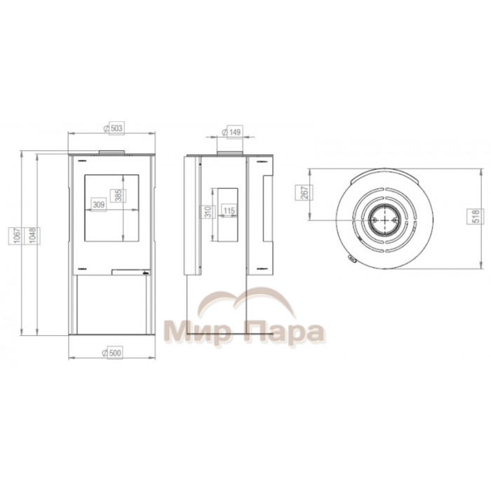 - Размеры печи камина: высота - 1067 мм, ширина - 500 мм, глубина - 518 мм.