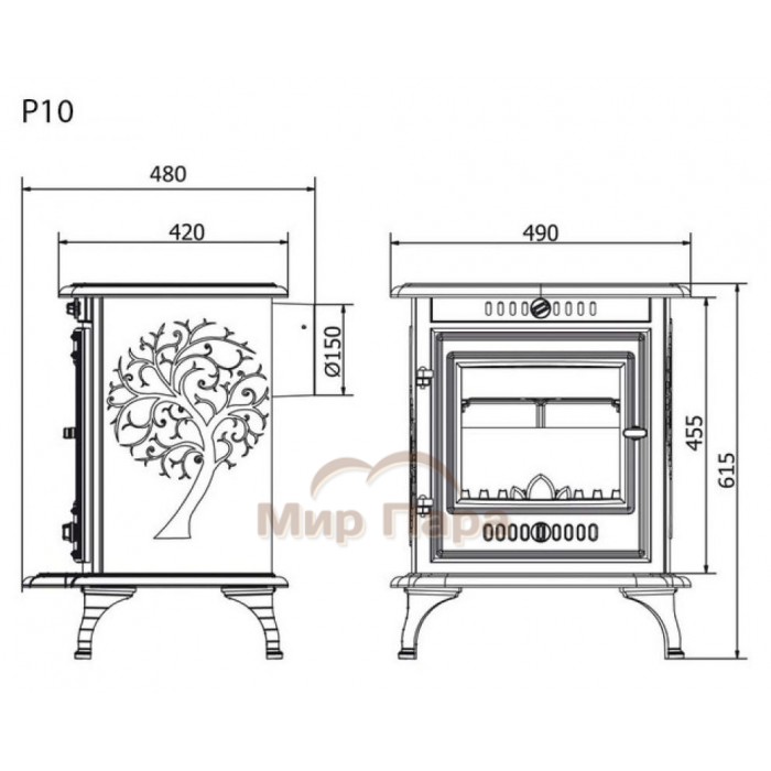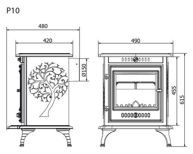 - Чугунная печь KAWMET P10 выгодно отличается более точной регулировкой подачи воздуха через нижнюю часть дверцы под колосниковую решетку. Открыв ее на максимум, вы подаете к дровам оптимальное количество воздуха для быстрого розжига.