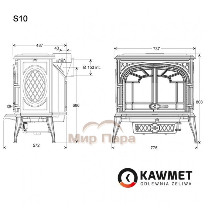 - Печка изготовлена из высококачественного вермикулярного чугуна с толщиной стенки 10 мм.