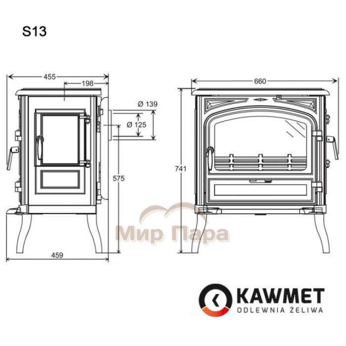 Описание Печь камин KawMet Premium S13 (10 kW)