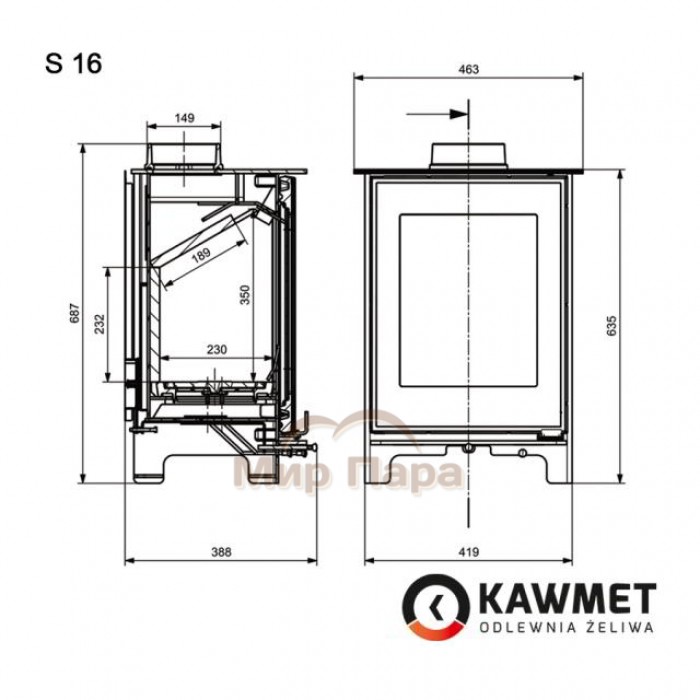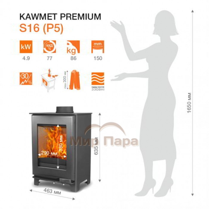 Описание Печь камин KawMet Premium S16 (4,9 kW)