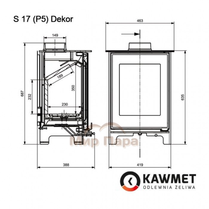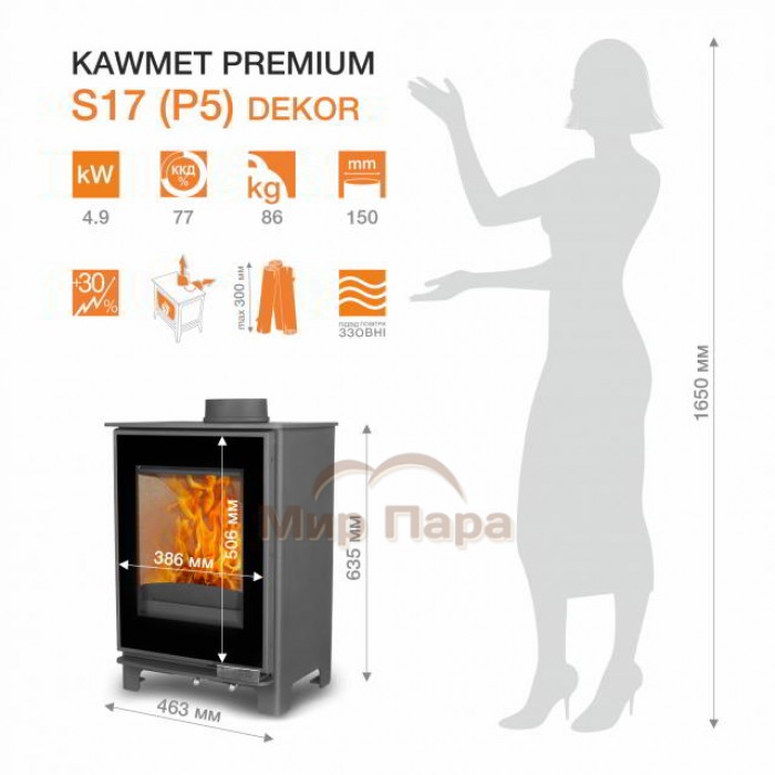 Описание Печь камин KawMet Premium S17 Dekor (4,9 kW)