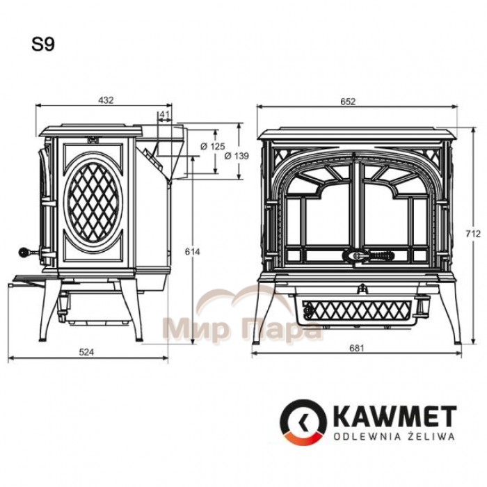 Описание Печь камин KawMet Premium S9 (11,3 kW)