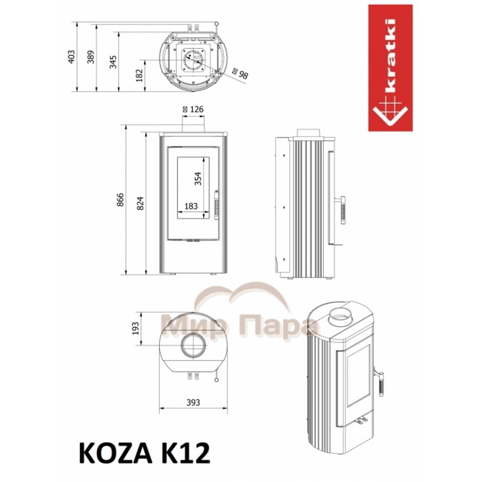 Описание Печь камин Kratki Koza K12