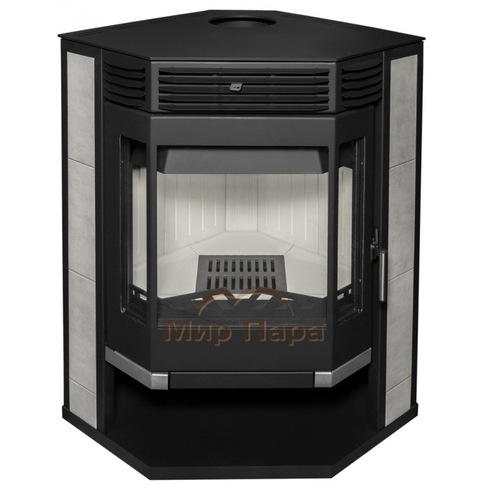 Дверца с призматической формой и большим стеклом обеспечивает отличный обзор огня. Максимальная длина закладываемых дров до 550 мм. Печь-камин оптимально подходит для обогрева помещений площадью до 120 м2.