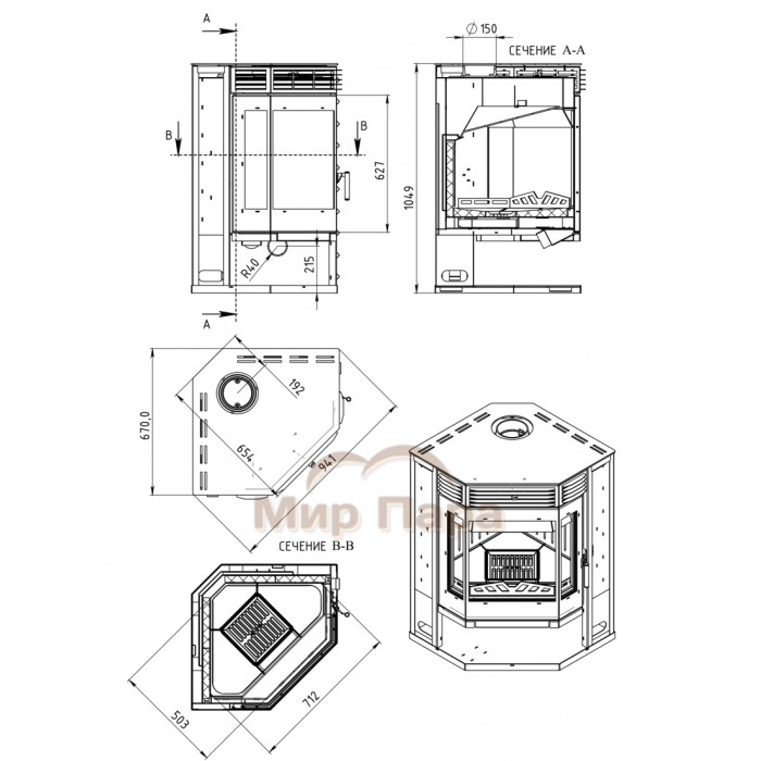 Описание Печь-камин Мета-Бел “Амур 12” АОТ 12.0