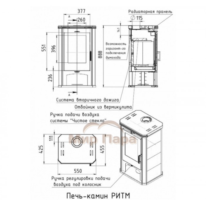 Описание Печь-камин Мета-бел АОТ-7,0 (в модификации РИТМ)