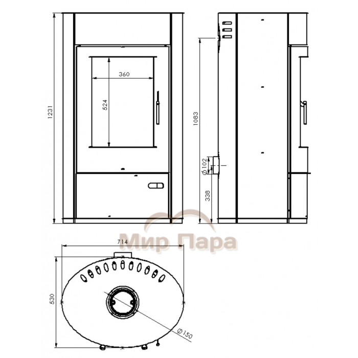 Максимальная длина дров 380 мм. Оригинальная конструкция теплообменника обеспечивает быстрый и эффективный нагрев теплоносителя.