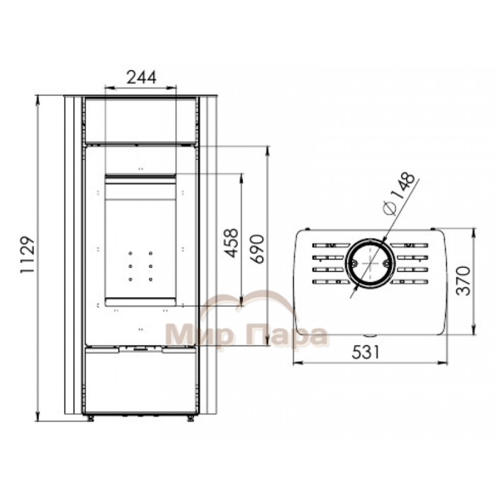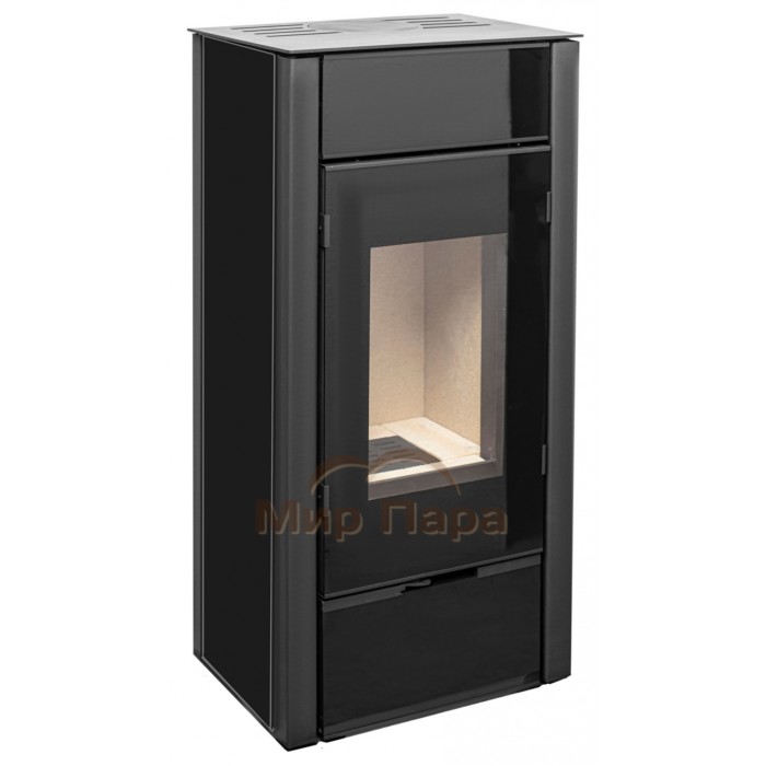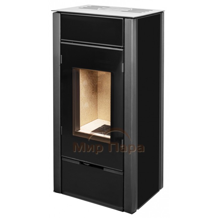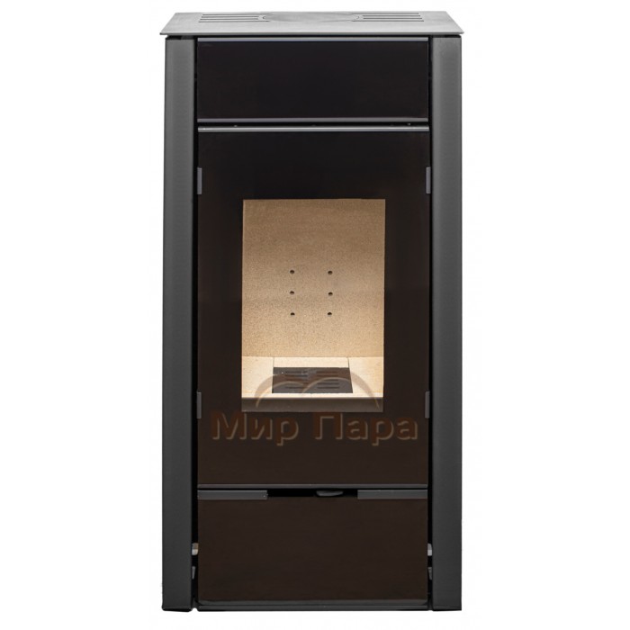 Печь-камин Нарочь получила современный технологичный дизайн, простое управление горением, высокое жаропрочное стекло с принтингом по периметру. Боковые стенки печи и передняя панель отделаны закаленным окрашенным в черный цвет стеклом.