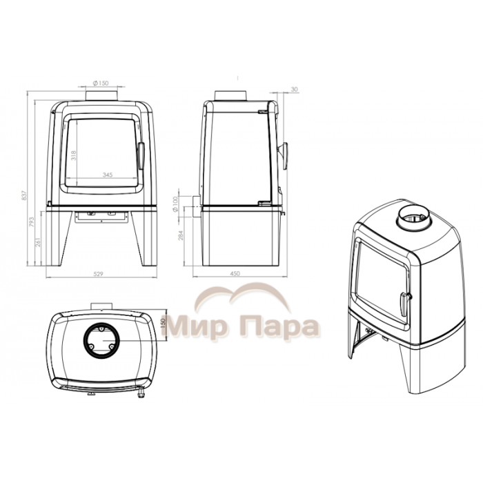 - Экологичность: печь работает на твердом топливе (дровах), что делает ее экологически чистой и безопасной для использования.