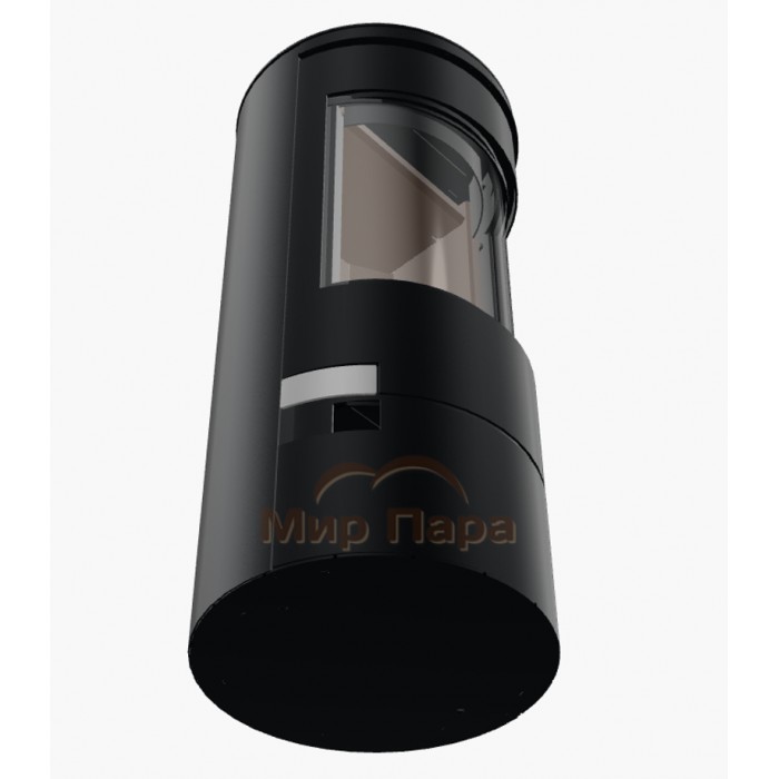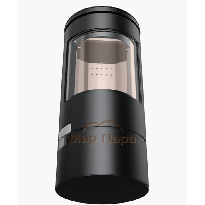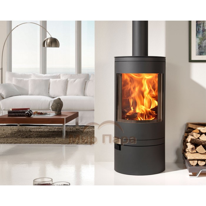 Печь-камин Panadero Akita Ecodesign помимо стильного современного дизайна отличается технологичностью. Печь позволяет с относительно небольшой закладки дров получить большой красивый огонь. И напротив, если необходимо прогреть помещение, печь способна отопить комнату объемом до 220 м3. Отзывчивость на регулировки и способность хорошо гореть при минимальной подаче воздуха достигается за счет футеровки топочной камеры вермикулитом, а также правильно спроектированной подачи воздуха. Воздух в печь попадает через отверстие, расположенное в нижней части корпуса. Далее воздух проходит внутри канала по задней стенке печи и частично попадает в топочную камеру через отверстия вторичного дожига. Далее воздух проходит внутри канала, расположенного в верхней части печи, где максимально прогревается, и только потом сильно разогретый воздух попадает на стекло. Благодаря такому сложному каналу подачи воздуха топочная камера очень хорошо прогревается и сажа не оседает на стекле, происходит более полное сжигание топлива. Именно поэтому нет необходимости делать огромные закладки дров для прогрева топочной камеры.