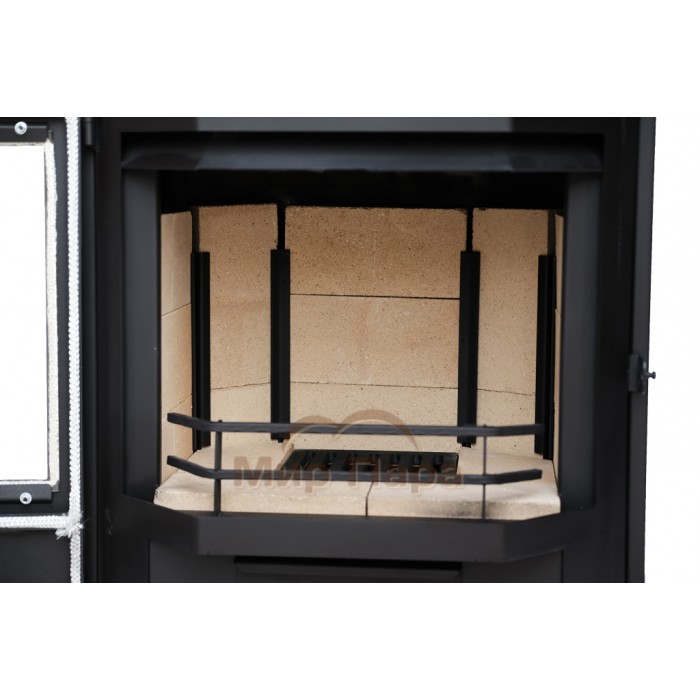 В конструкцию печи-камина "Сибирь" - 12 кВт внедрена доработанная система дожига вторичных газов, позволяющая увеличить КПД камина и скорость нагрева отапливаемого помещения.