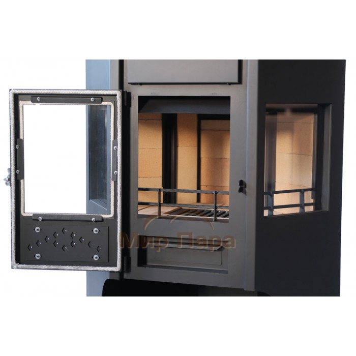 Разработанная конструкторским бюро завода система воздушного завеса панорамного стекла позволяет сохранять чистоту поверхности, защищает его от сажи и повышенного термического воздействия на протяжении длительного периода эксплуатации. Стекло не нужно постоянно очищать специальными средствами, достаточно протереть его влажной тканью после полного остывания печи. А размер панорамного стекла не оставит равнодушным любителей созерцания стихии огня в загородном доме.