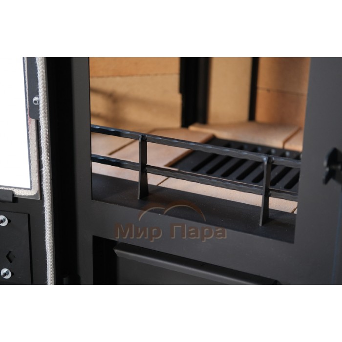 Система ограждения для дров позволяет компактно размещать поленья внутри топки, защищая тем самым панорамное стекло от механических воздействий. Доступная цена ниже среднерыночных показателей на 30% делает печь – камин "Сибирь" - 15 кВт комфортабельным решением для завершения интерьера загородного дома в разумном бюджете.