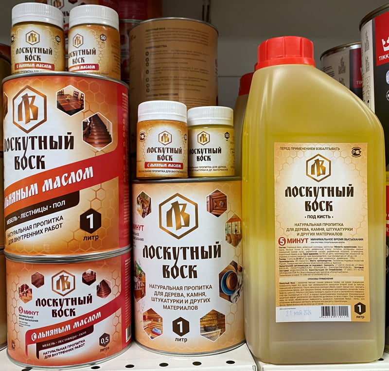 Лоскутный воск с льняным маслом сохраняет естественную структуру и цвет древесины, придавая ей благородную глубину, проникает в древесину до 2 мм. Создает приятное на вид и ощупь бархатистое покрытие, не требующее дополнительной обработки.