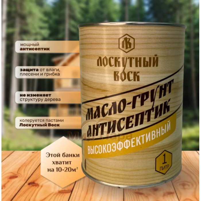 Масло-грунт антисептик высокоэффективный Лоскутный Воск, 1л