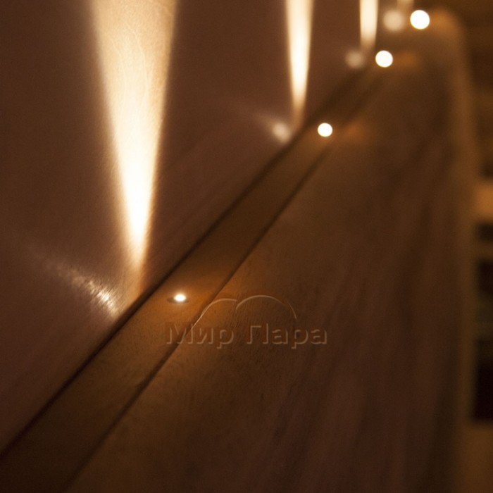 В набор входит проектор, оптоволокна из стекловолокна и линза для подсветки печи. Волокна типа S-Flex диаметром 1,5 мм можно монтировать в полках, спинке и потолке, формируя аккуратные световые точки и акцент в зоне каменки.