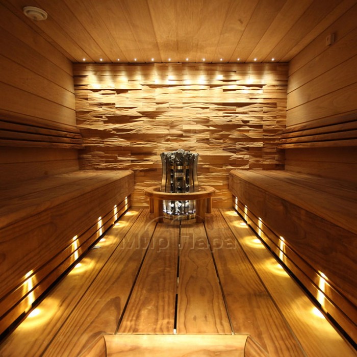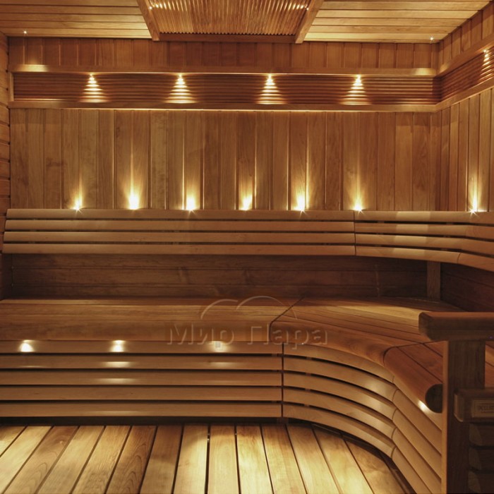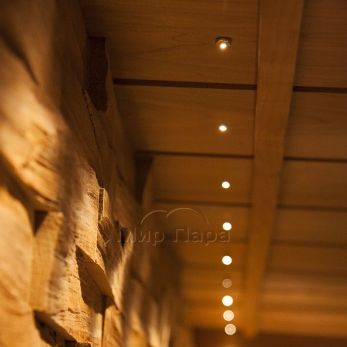 Проектор имеет степень защиты IP65 и может быть установлен внутри сауны, под полками, на высоте не ниже 70 см от пола. В качестве источника света используется светодиод теплого света с цветовой температурой 2700K, мощностью 16 Вт и высоким индексом цветопередачи Ra 90. Блок питания поддерживает диммирование от напряжения, что позволяет регулировать яркость освещения под настроение и задачу.