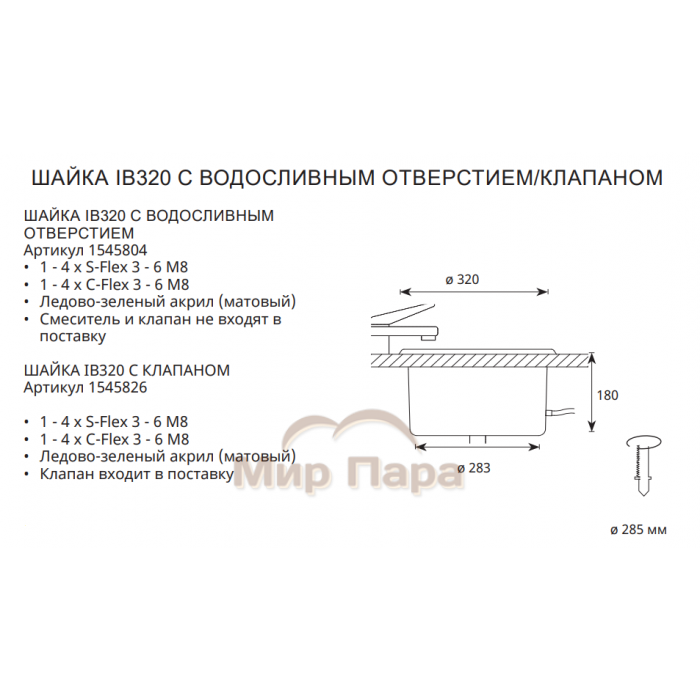 Описание Шайка Cariitti IB320 с внешней подсветкой и клапаном, под оптоволокно