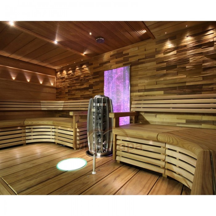 Модель подходит для использования в бане и сауне, доступна в исполнении с удобными ручками, а также с водосливным отверстием или клапаном для удобного слива воды. В комплект входит блок питания во влагозащищенном корпусе с классом защиты IP 67, что обеспечивает безопасную работу подсветки во влажной среде.