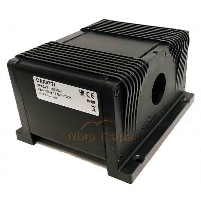 Светодиодный проектор Cariitti VPAC27, 2700 K — это мощный оптоволоконный источник теплого белого света для создания комфортной подсветки в сауне, хаммаме и спа-зонах. Он служит «сердцем» системы оптоволоконного освещения, передавая свет на жгут волокон и формируя мягкое, уютное освещение с цветовой температурой 2700 K и ресурсом светодиода до 50 000 часов.