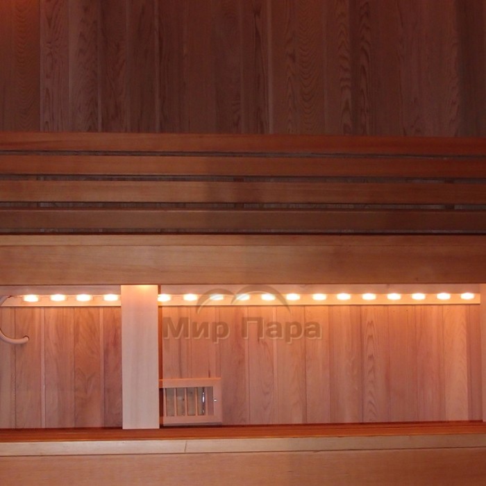 Световой шнур Licht-2000 Xenoflex с галогеновыми лампами 2800 K (1 метр) — удобное решение для создания линейной подсветки в парной и зонах отдыха. Он идеально подходит для подсветки полков, спинок, потолка, соляных блоков и других элементов интерьера, подчеркивая геометрию пространства и создавая уютную атмосферу.