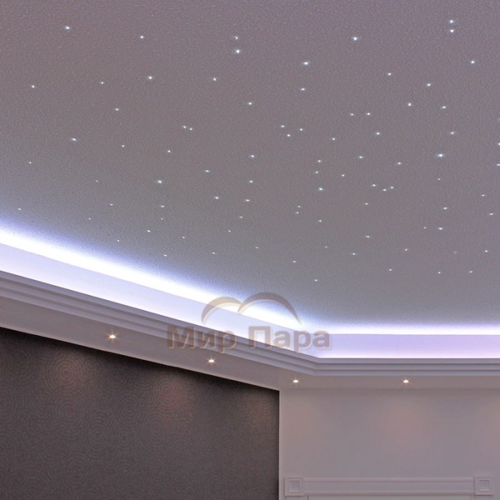 Комплект поставляется полностью готовым к монтажу: в него входят проектор и волоконный жгут, поэтому на объекте остается только разметить потолок и вывести концы волокон в точки будущих «звезд».