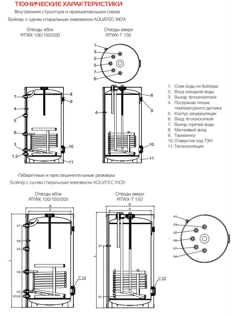 Описание Бойлер косвенного нагрева Royal Thermo AQUATEC INOX RTWX-T